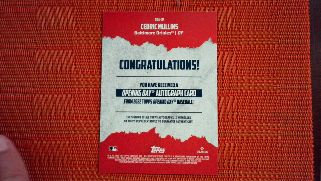 2022 Topps Opening Day #ODA-CM Cedric Mullins Autograph Baseball