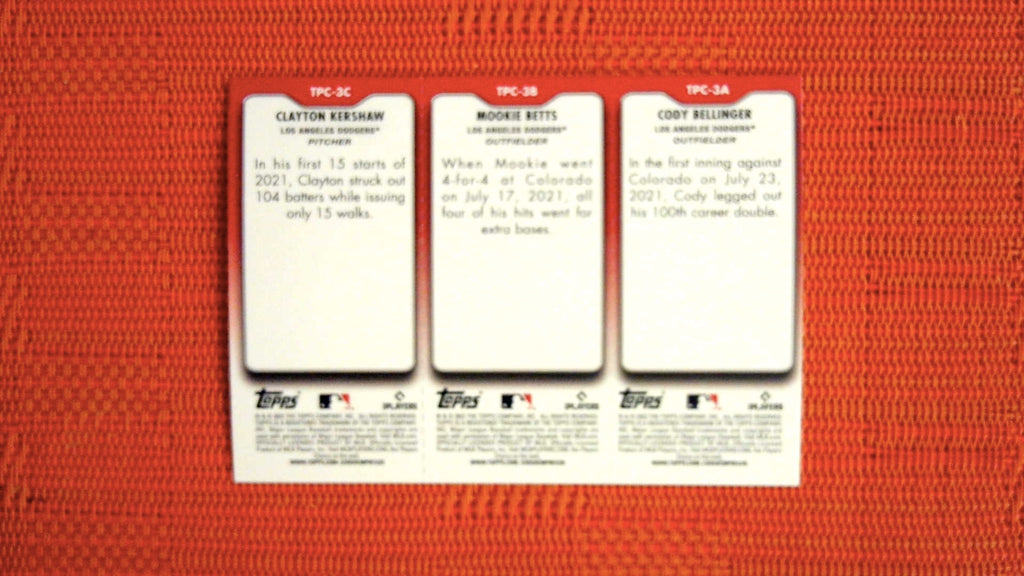 2022 Topps Opening Day Triple Play Set #TPC-3 Cody Bellinger/Mookie Betts/Clayton Kershaw