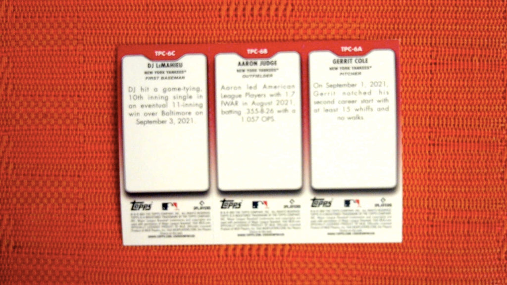 2022 Topps Opening Day Triple Play Set #TPC-6 Aaron Judge/DJ LeMahieu/Gerritt Cole