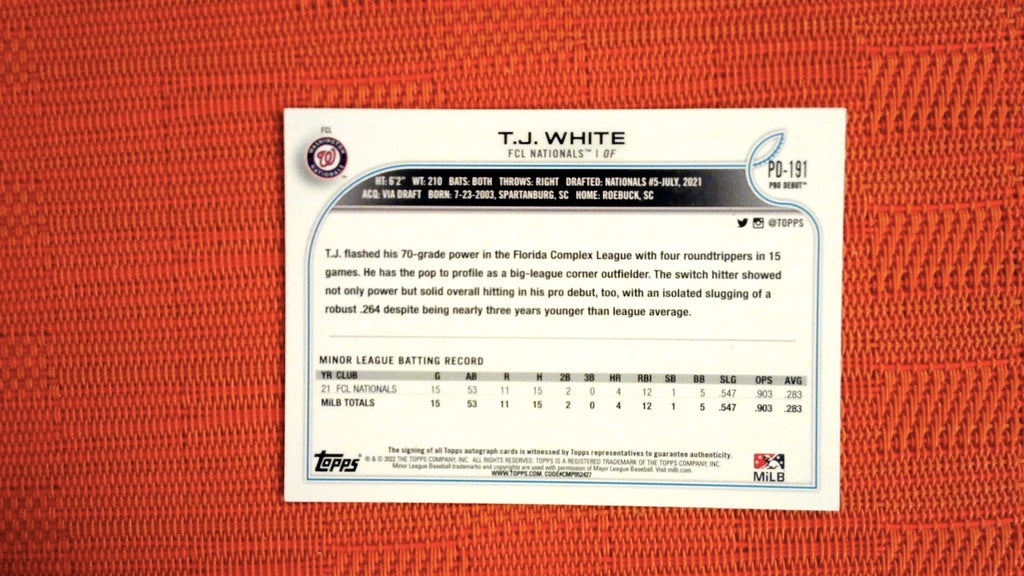 2022 Topps Pro Debut Auto #PD-191 TJ White