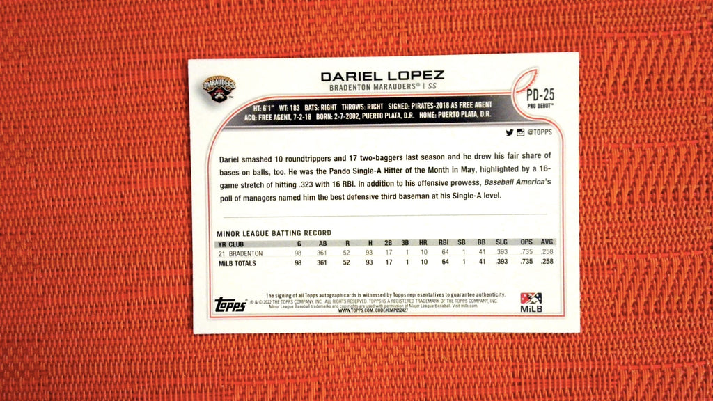 2022 Topps Pro Debut Auto #PD-25 Dariel Lopez