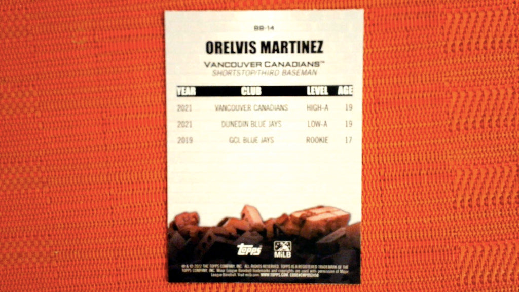 2022 Topps Pro Debut Brick by Brick Set #BB-14 Orelvis Martinez