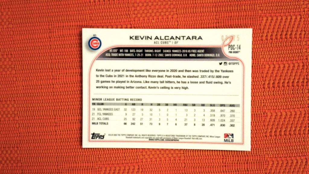 2022 Topps Pro Debut Chrome Aqua Refractor #PDC-14 Kevin Alcantara 3/75