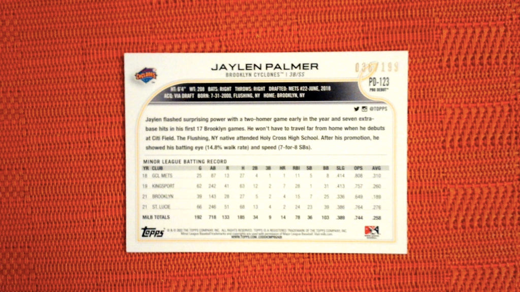 2022 Topps Pro Debut Fuchsia #PD-123 Jaylen Palmer 36/199