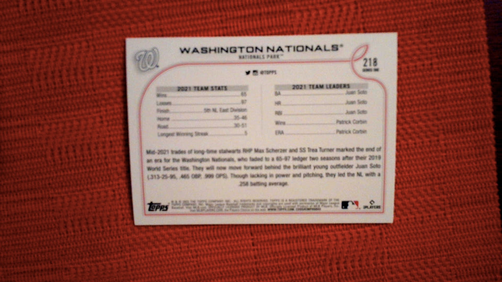 2022 Topps Series 1 Rainbow Foil Parallel #218 Washington Nationals Team Card Baseball