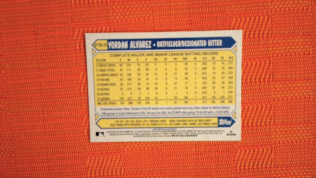 2022 Topps Update 1987 Topps Baseball Set #87TBU-21 Yordan Alvarez