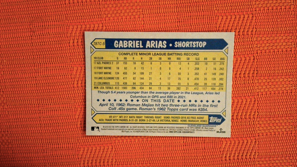 2022 Topps Update Silver Pack Mojo #T87C-5 Gabriel Arias Rookie