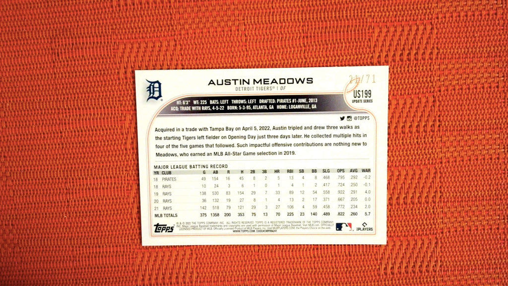 2022 Topps Update #US199 Austin Meadows Black /71