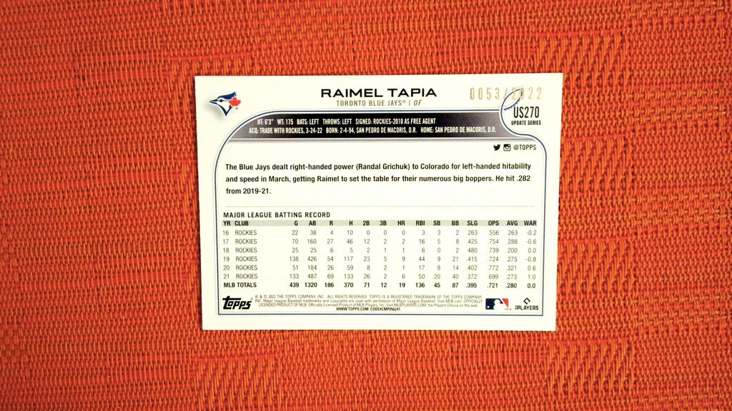 2022 Topps Update #US270 Raimel Tapia Gold /2022