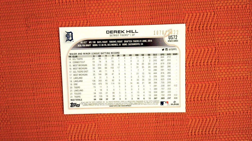2022 Topps Update #US72 Derek Hill Gold /2022