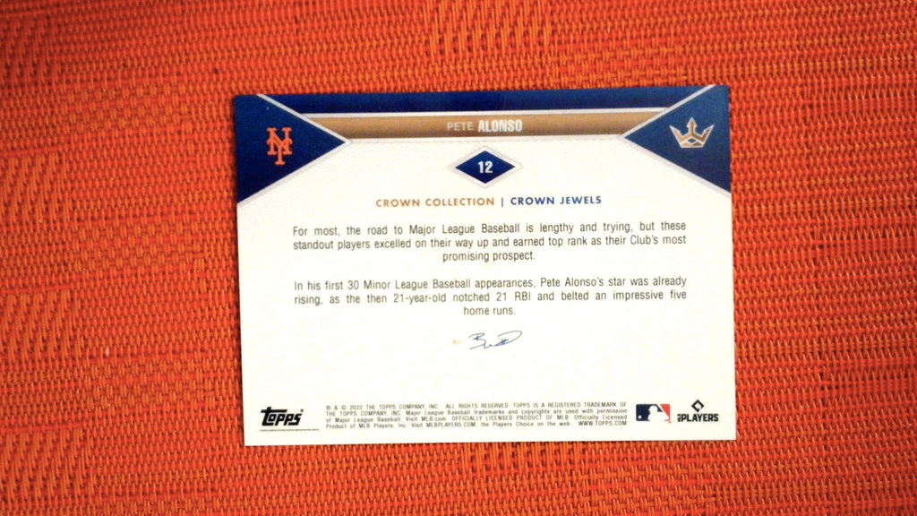 This is a nice example of a 2022 Topps x Bobby Witt Jr. Crown Collection #12 Pete Alonso .