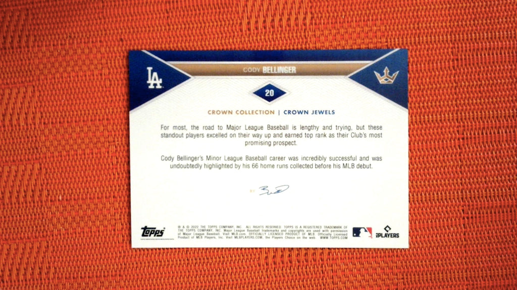 This is a nice example of a 2022 Topps x Bobby Witt Jr. Crown Collection #20 Cody Bellinger .