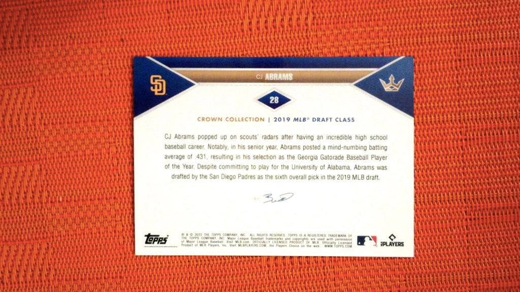 This is a nice example of a 2022 Topps x Bobby Witt Jr. Crown Collection #28 CJ Abrams .