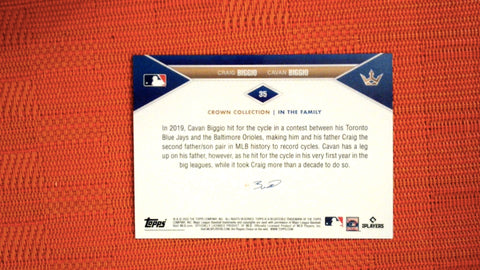This is a nice example of a 2022 Topps x Bobby Witt Jr. Crown Collection #35 Cavan Biggio / Craig Biggio .