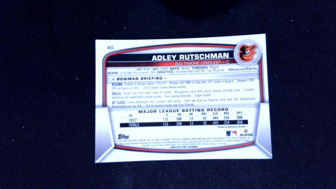 This is a nice example of a 2023 Bowman #40 Adley Rutschman Mojo Refractors.