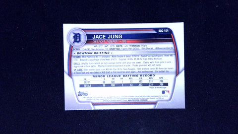 This is a nice example of a 2023 Bowman Draft #BDC-104 Jace Jung Chrome.