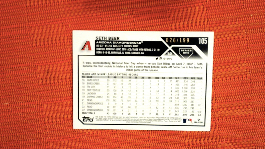 This is a nice example of a 2023 Topps #105 Seth Beer Red Foil.