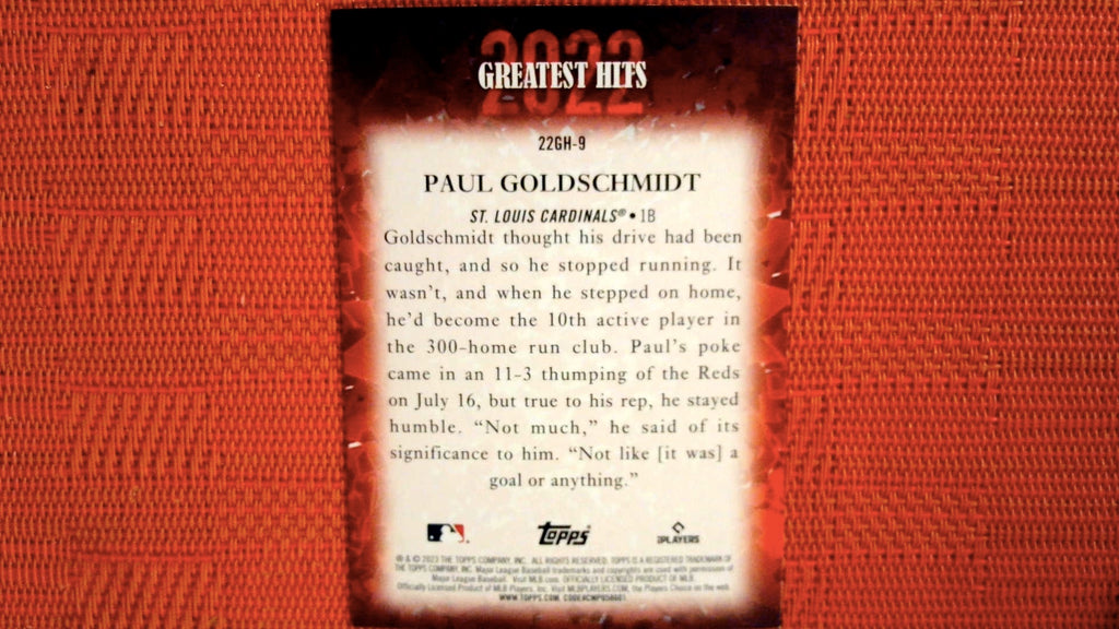 This is a nice example of a 2023 Topps #22GH-9 Paul Goldschmidt 2022 Greatest Hits.