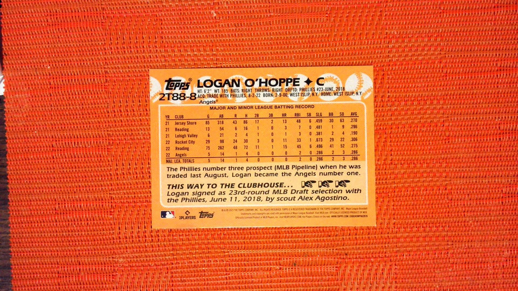 This is a nice example of a 2023 Topps #2T88-8 Logan O'Hoppe 1988 Baseball 35th Anniversary (Series Two).