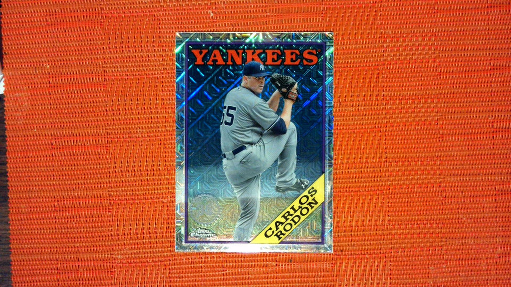 This is a nice example of a 2023 Topps #2T88C-77 Carlos Rodón 1988 Baseball 35th Anniversary Chrome (Series Two).