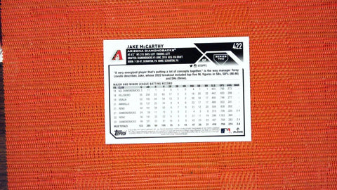 This is a nice example of a 2023 Topps #422 Jake McCarthy Rainbow Foil.