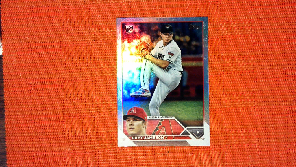This is a nice example of a 2023 Topps #502 Drey Jameson Rainbow Foil.