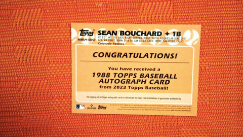 This is a nice example of a 2023 Topps #88BA-SBO Sean Bouchard 1988 Baseball 35th Anniversary Autographs.