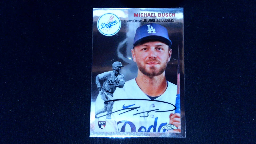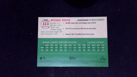 This is a nice example of a 2023 Topps Chrome Platinum Anniversary #113 Michael Busch .