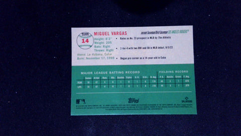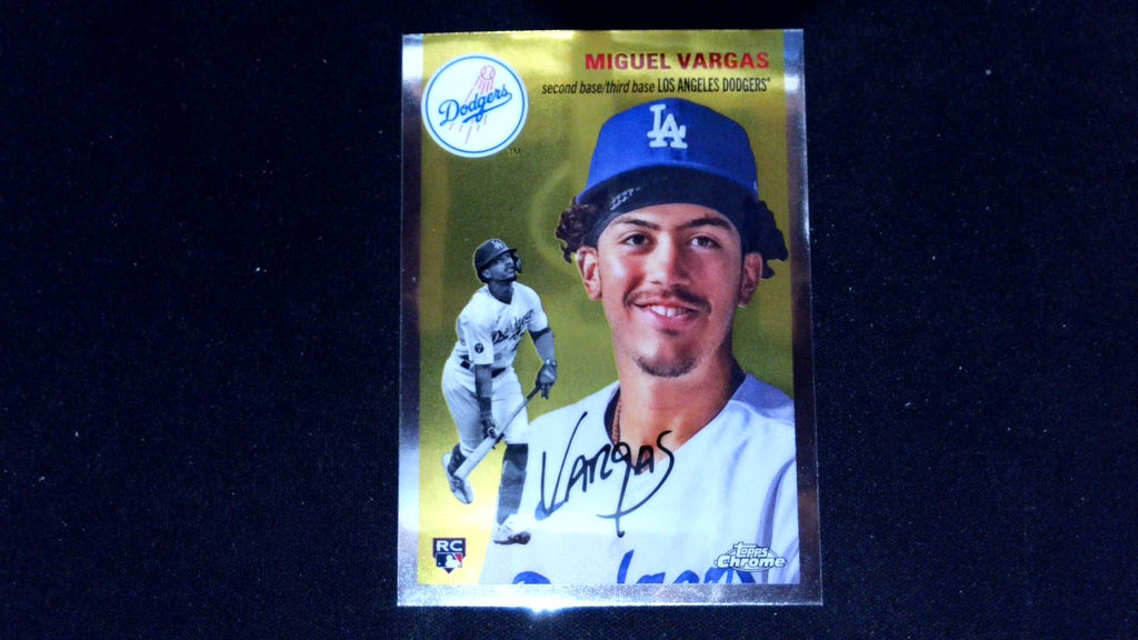 This is a nice example of a 2023 Topps Chrome Platinum Anniversary #14 Miguel Vargas .