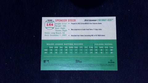 This is a nice example of a 2023 Topps Chrome Platinum Anniversary #144 Spencer Steer .
