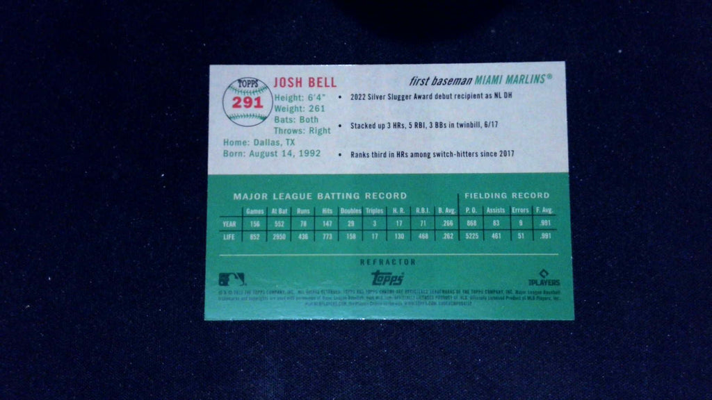 This is a nice example of a 2023 Topps Chrome Platinum Anniversary #291 Josh Bell Refractor.