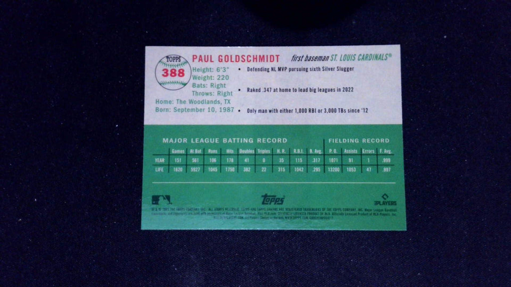 This is a nice example of a 2023 Topps Chrome Platinum Anniversary #388 Paul Goldschmidt X-Fractor.