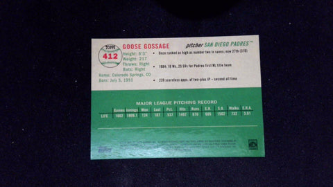 This is a nice example of a 2023 Topps Chrome Platinum Anniversary #412 Goose Gossage Green Wave Refractors.
