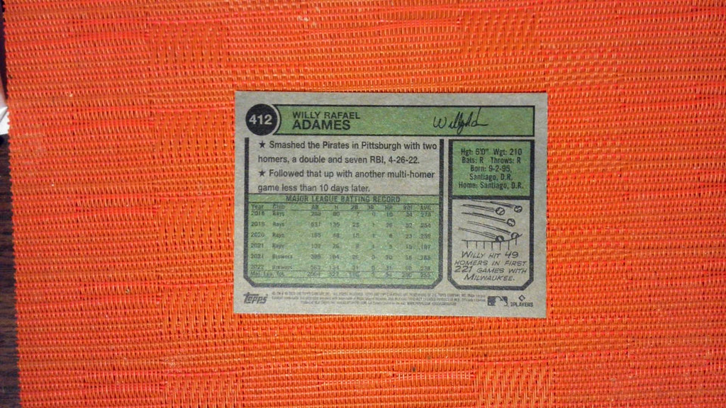 This is a nice example of a 2023 Topps Heritage #412 Willy Adames .