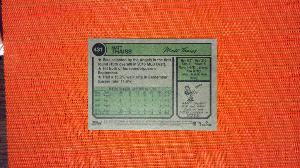 This is a nice example of a 2023 Topps Heritage #431 Matt Thaiss .