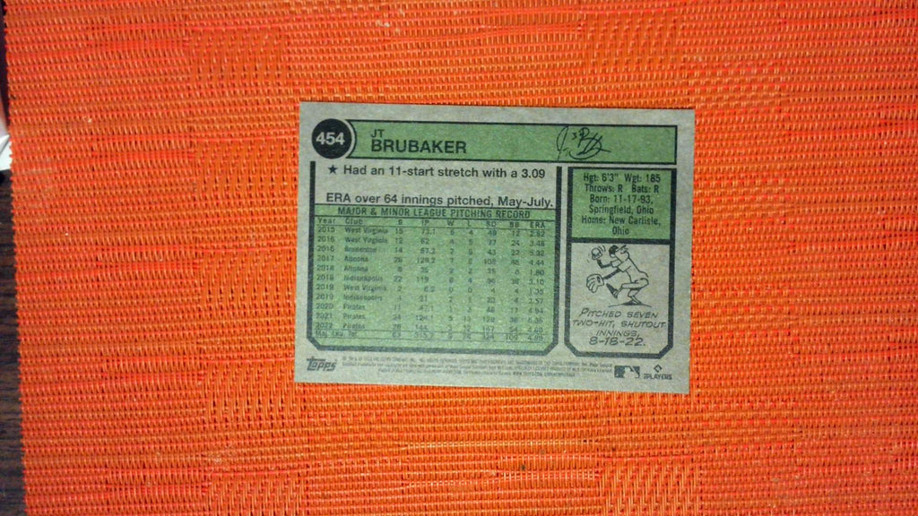 This is a nice example of a 2023 Topps Heritage #454 JT Brubaker .