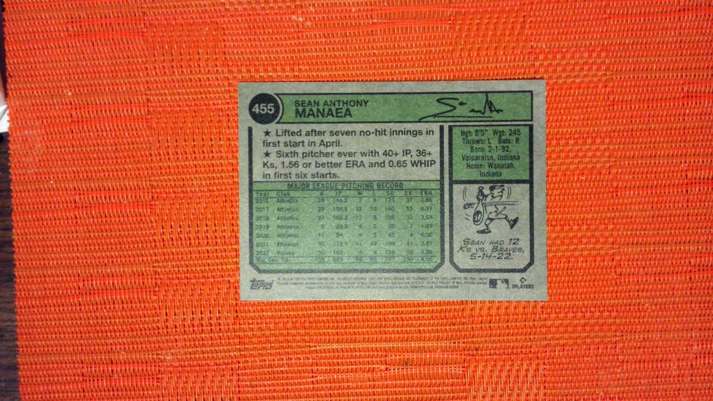 This is a nice example of a 2023 Topps Heritage #455 Sean Manaea .