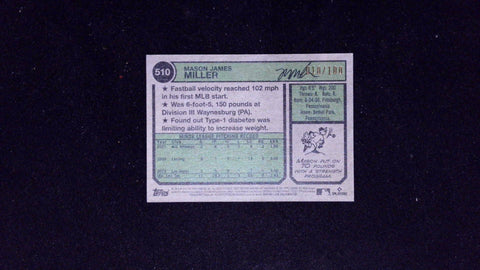 This is a nice example of a 2023 Topps Heritage #510 Mason Miller Mini.
