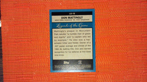 This is a nice example of a 2023 Topps #LG-15 Don Mattingly Legends of the Game.