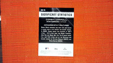This is a nice example of a 2023 Topps #SS-15 Corbin Carroll Significant Statistics.