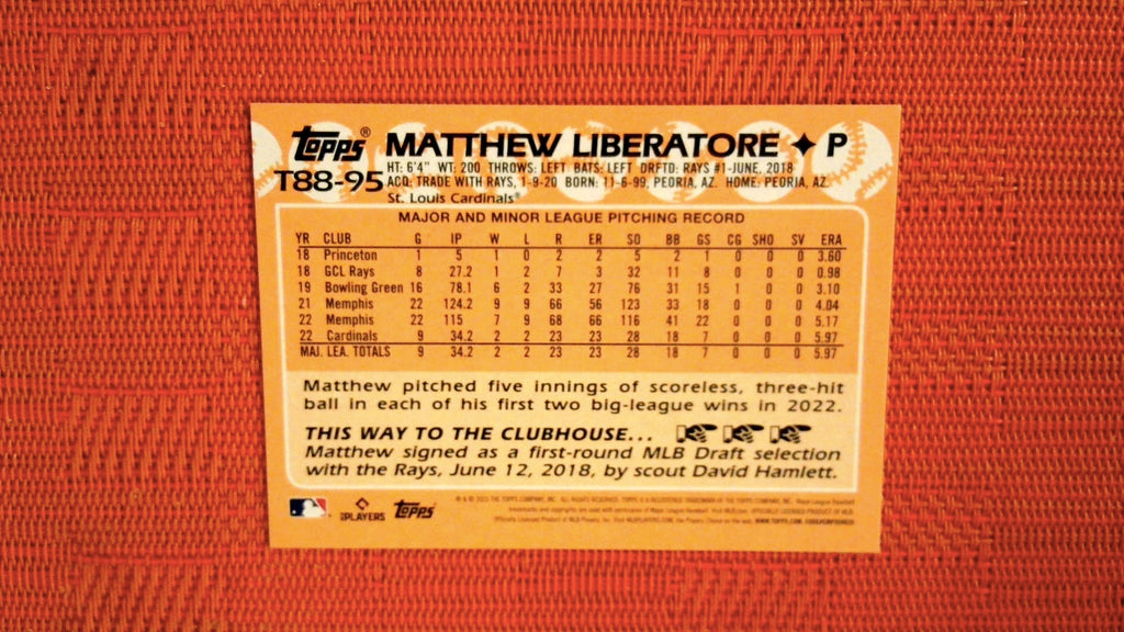 This is a nice example of a 2023 Topps #T88-95 Matthew Liberatore 1988 Baseball 35th Anniversary.