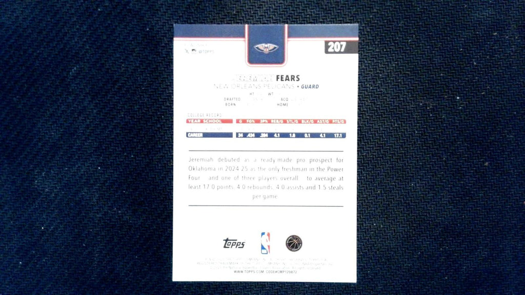 This is a nice example of a 2025-26 Topps #207 Jeremiah Fears .
