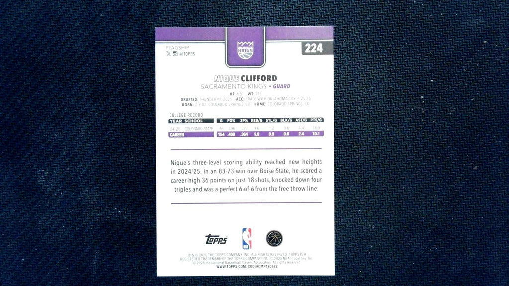 In 2025 Nique Clifford played for the Sacramento Kings.