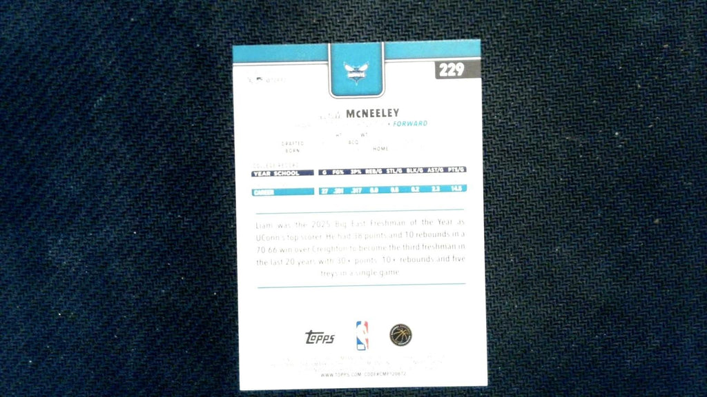 This is a nice example of a 2025-26 Topps #229 Liam McNeeley .