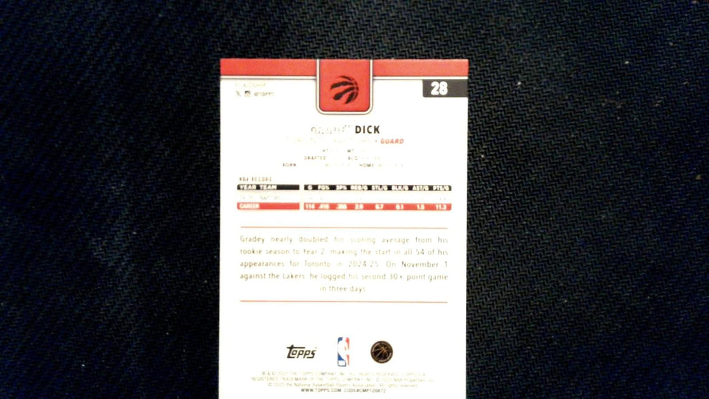 This is a nice example of a 2025-26 Topps #28 Gradey Dick Holo Foil.