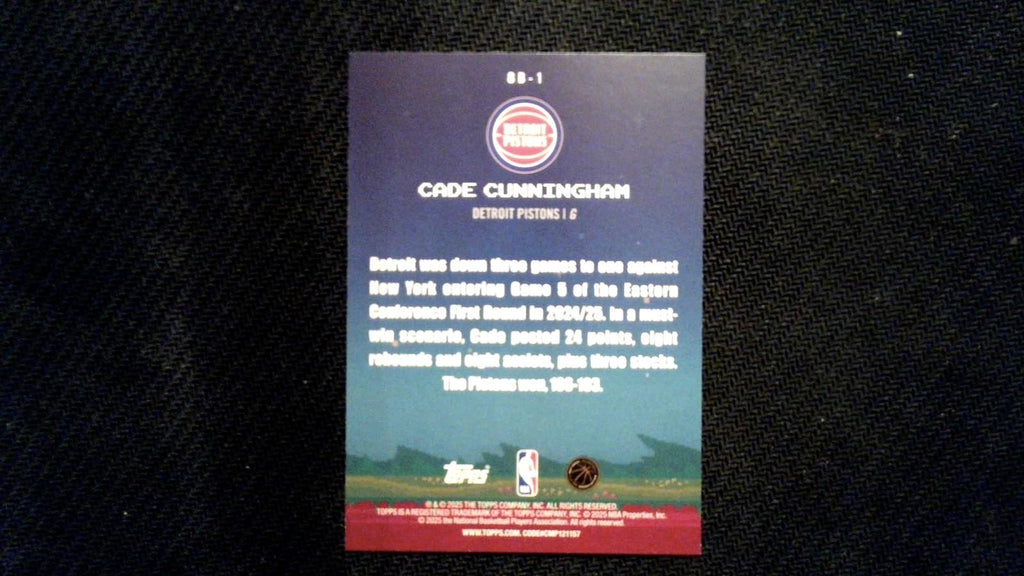 This is a nice example of a 2025-26 Topps #8B-1 Cade Cunningham 8-Bit Ballers.