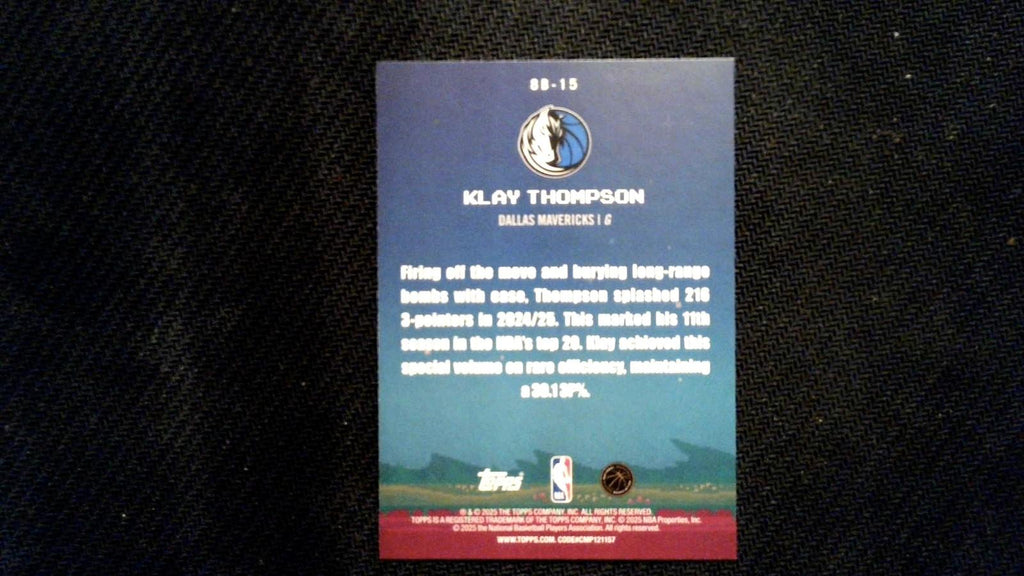 This is a nice example of a 2025-26 Topps #8B-15 Klay Thompson 8-Bit Ballers.