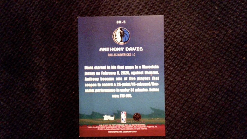 This is a nice example of a 2025-26 Topps #8B-5 Anthony Davis 8-Bit Ballers.