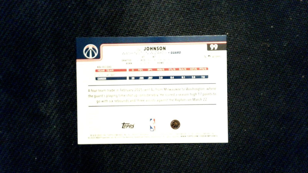 This is a nice example of a 2025-26 Topps #99 AJ Johnson Team Color Border.