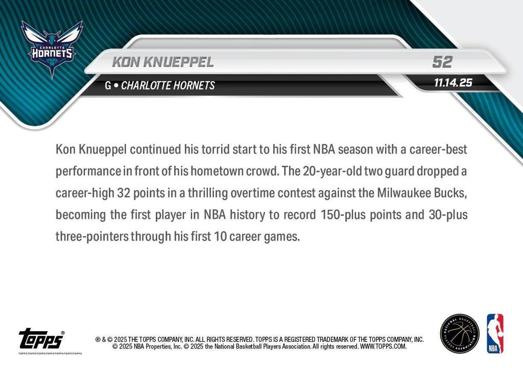 This is a nice example of a 2025-26 Topps Now #52 Kon Knueppel .